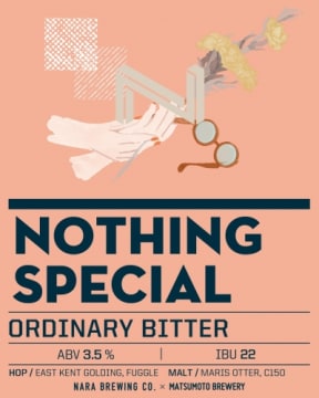 今回のリリースは、松本ブルワリー(長野県松本市)とのコラボビール、NOTHING SPECIAL(ナッシング スペシャル)。 その名のとおり、派手さはない、普段からのパブで出てくるような、日常に溶け込んだ、しみじみと楽しめる仕上がりです。 松本ブルワリーのヘッドブルワー勝山さんのアドバイスのもと、原材料は麦芽からホップ、酵母に至るまですべて英国産にこだわっており、おだやかで優しいモルトの香りの奥に、ほのかに干し草を思わせる英国産ホップFuggleの香りが潜んでいます。口に含